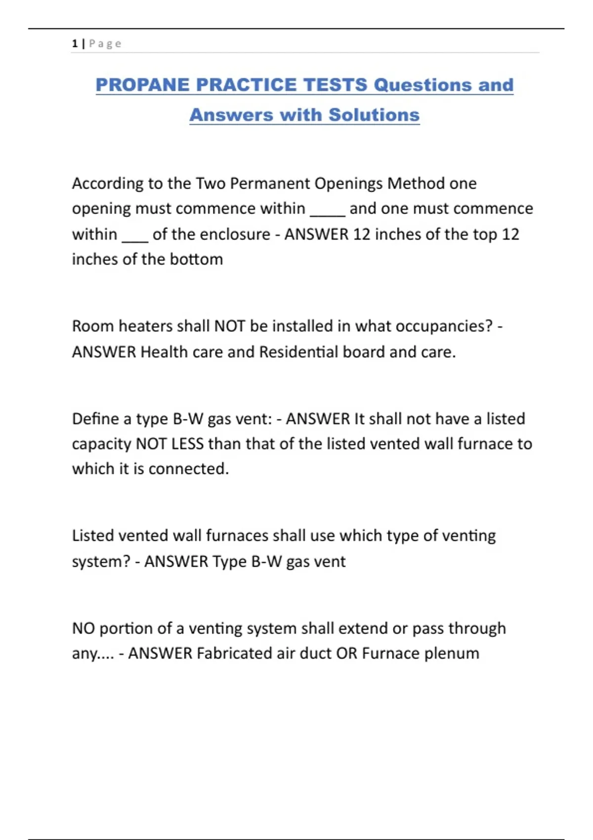 PROPANE PRACTICE TESTS Questions and