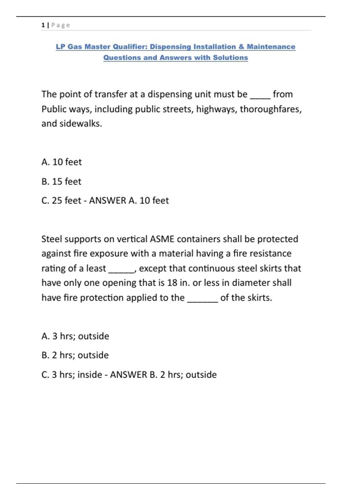 LP Gas Master Qualifier Dispensing Installation & Maintenance Questions and Answers with Solutions!!!