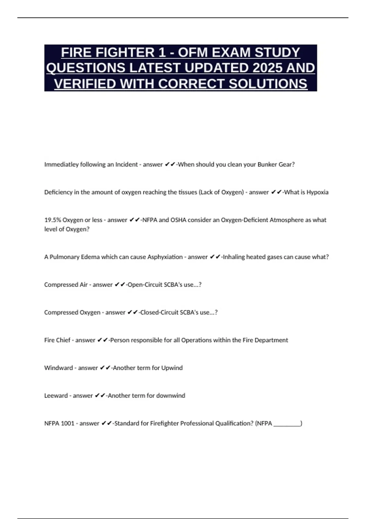 FIRE FIGHTER 1 - OFM EXAM STUDY QUESTIONS LATEST UPDATED 2025 AND VERIFIED WITH CORRECT SOLUTIONS