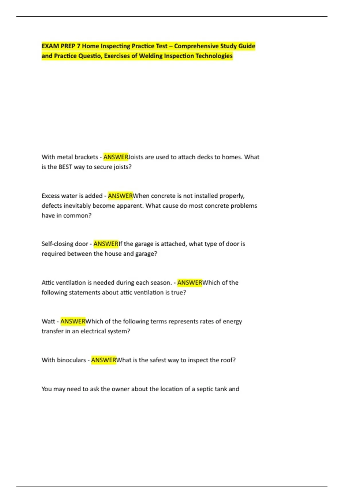 EXAM PREP 7 Home Inspecting Practice Test – Comprehensive Study Guide