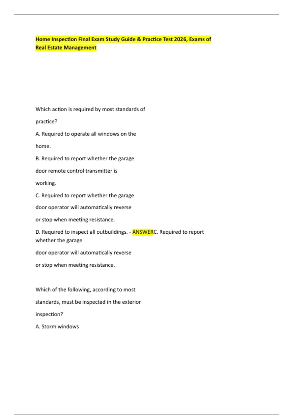 Home Inspection Final Exam Study Guide & Practice Test 2026, Exams of