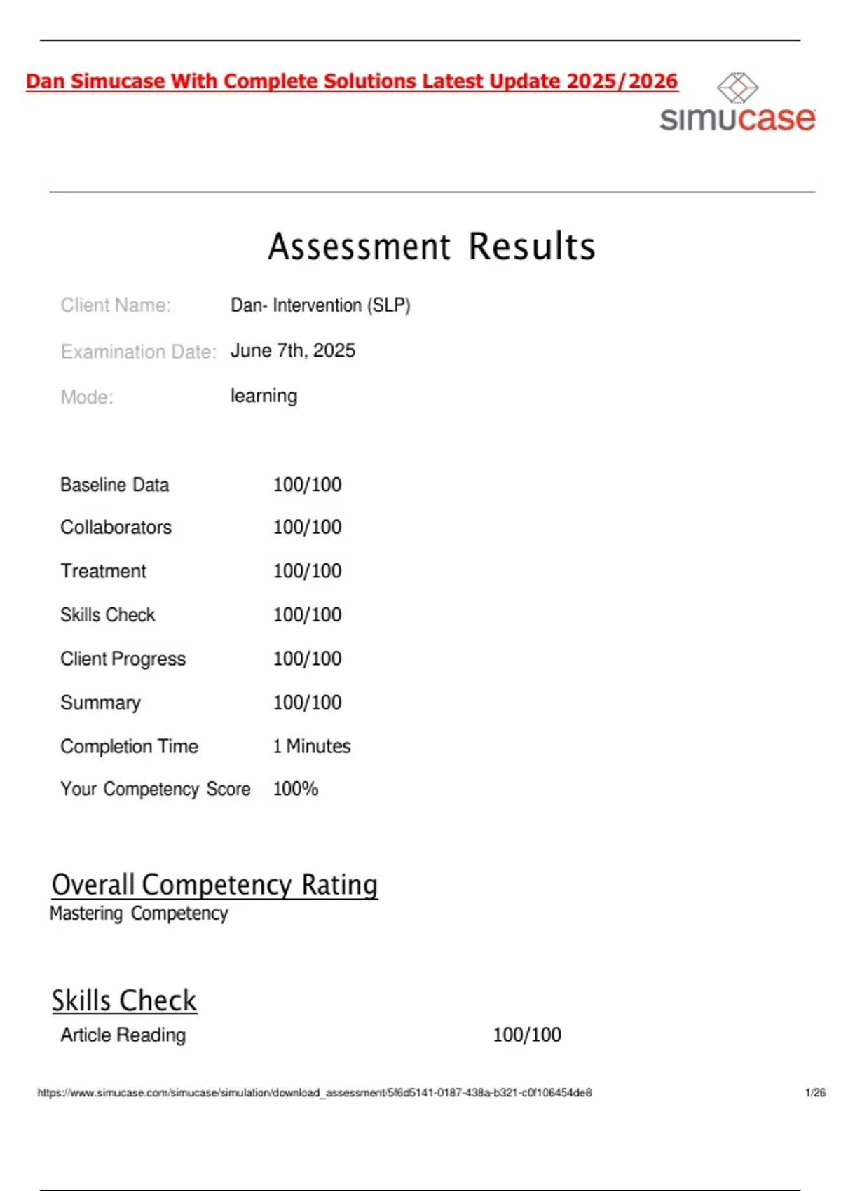 Dan Simucase With Complete Solutions Latest Update 2025/2026