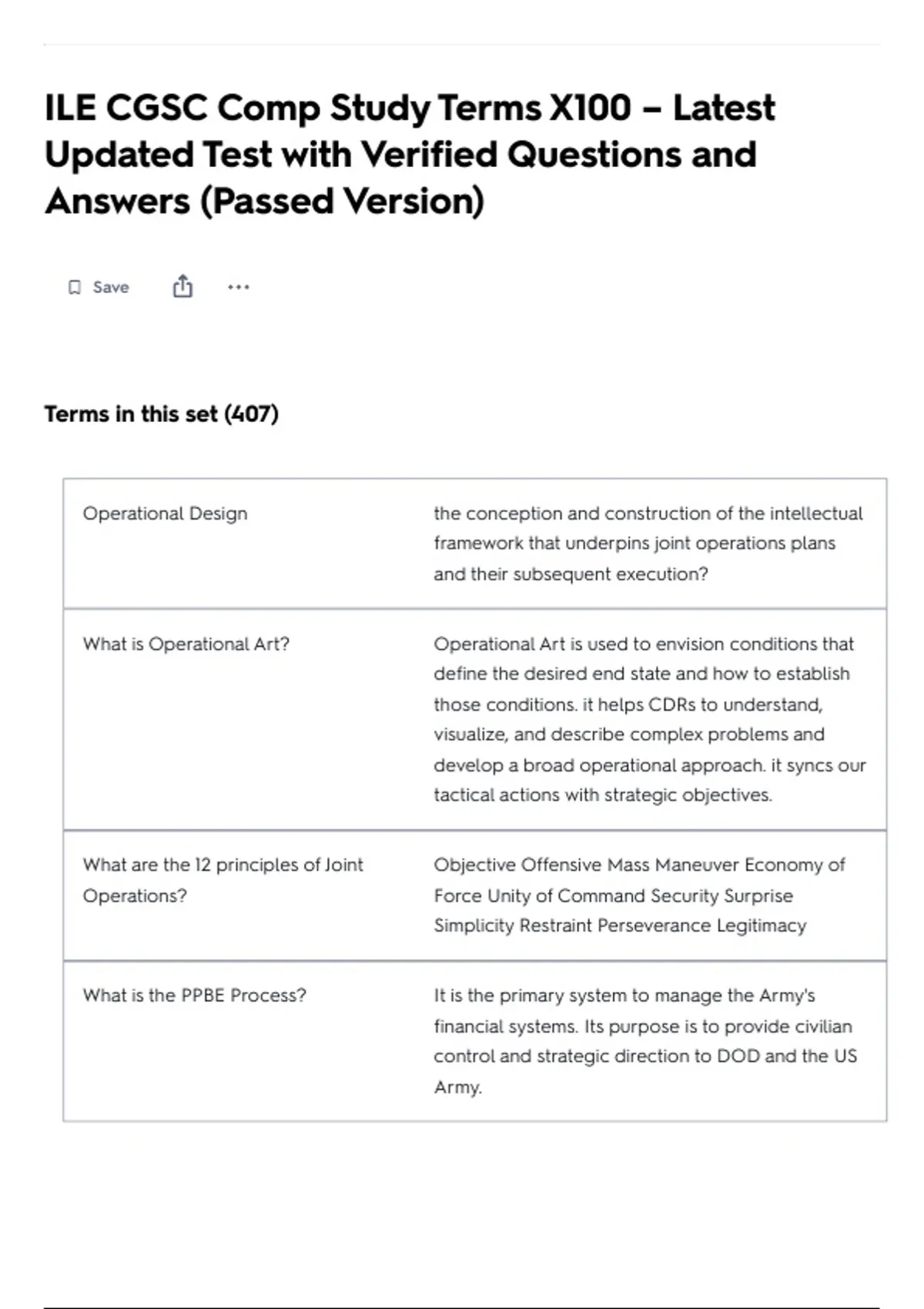 ILE CGSC Comp Study Terms X100 – Latest Updated Test with Verified Questions and Answers (Passed Version)