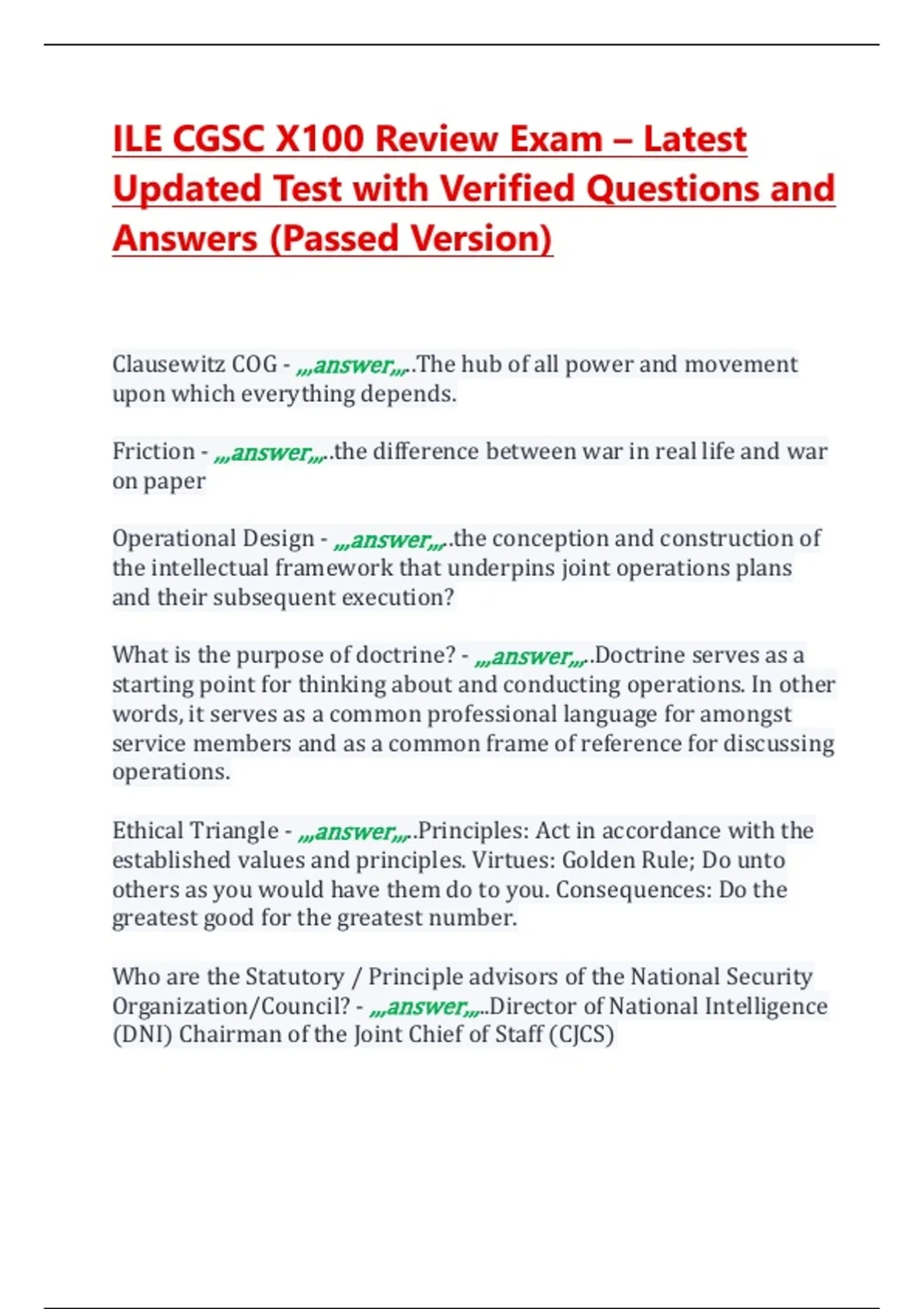 ILE CGSC X100 Review Exam – Latest