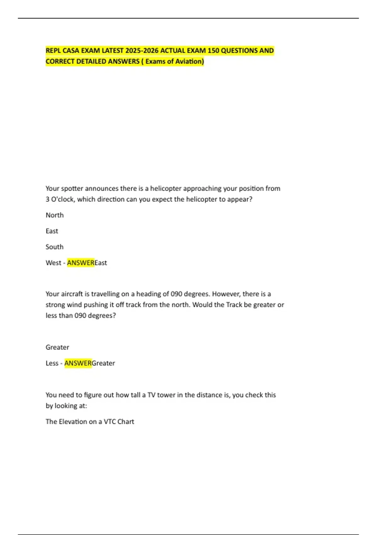 REPL CASA EXAM LATEST ACTUAL EXAM 150 QUESTIONS AND CORRECT DETAILED ANSWERS ( Exams of Aviation)