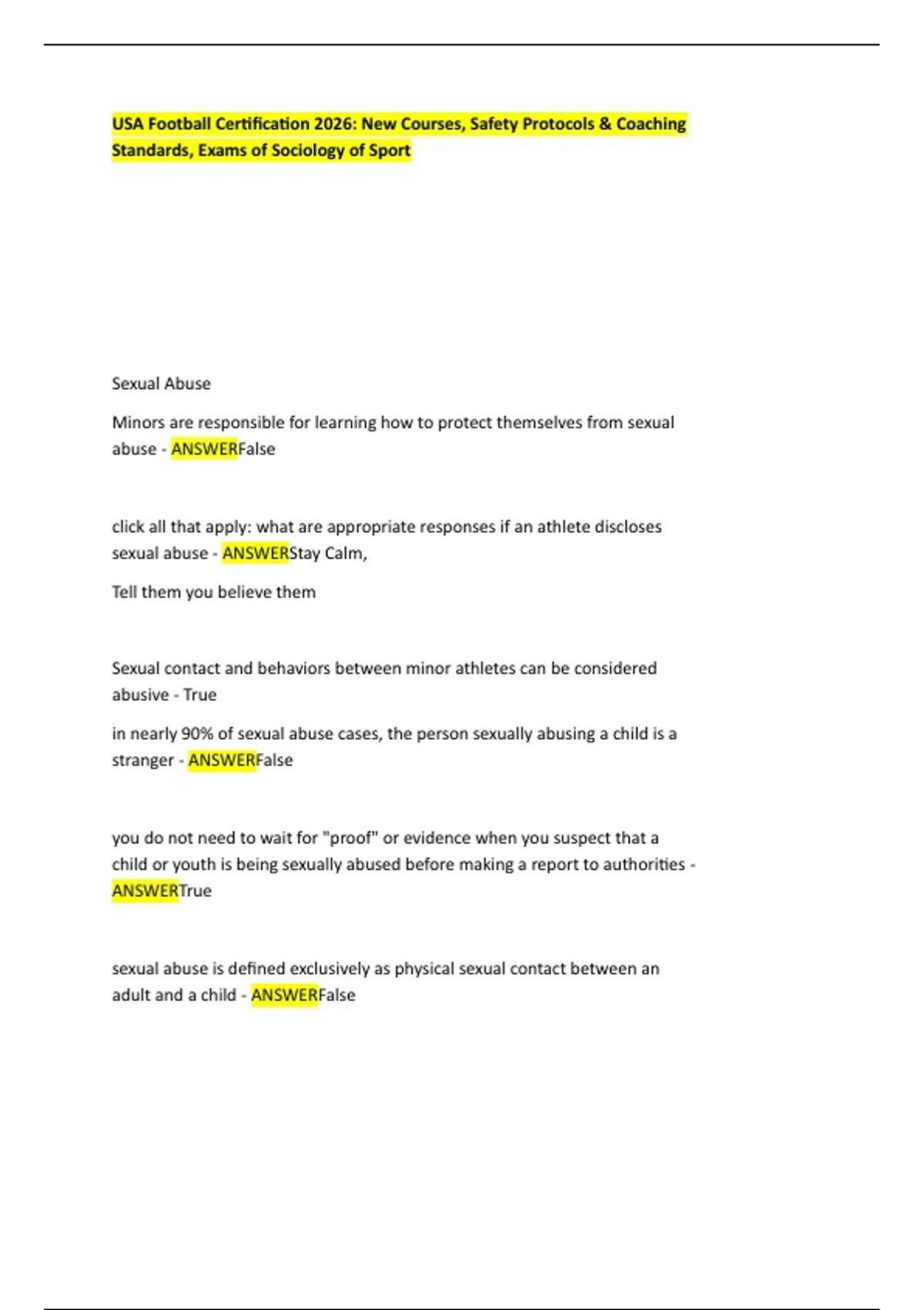 USA Football Certification 2026: New Courses, Safety Protocols & Coaching Standards, Exams of Sociology of Sport