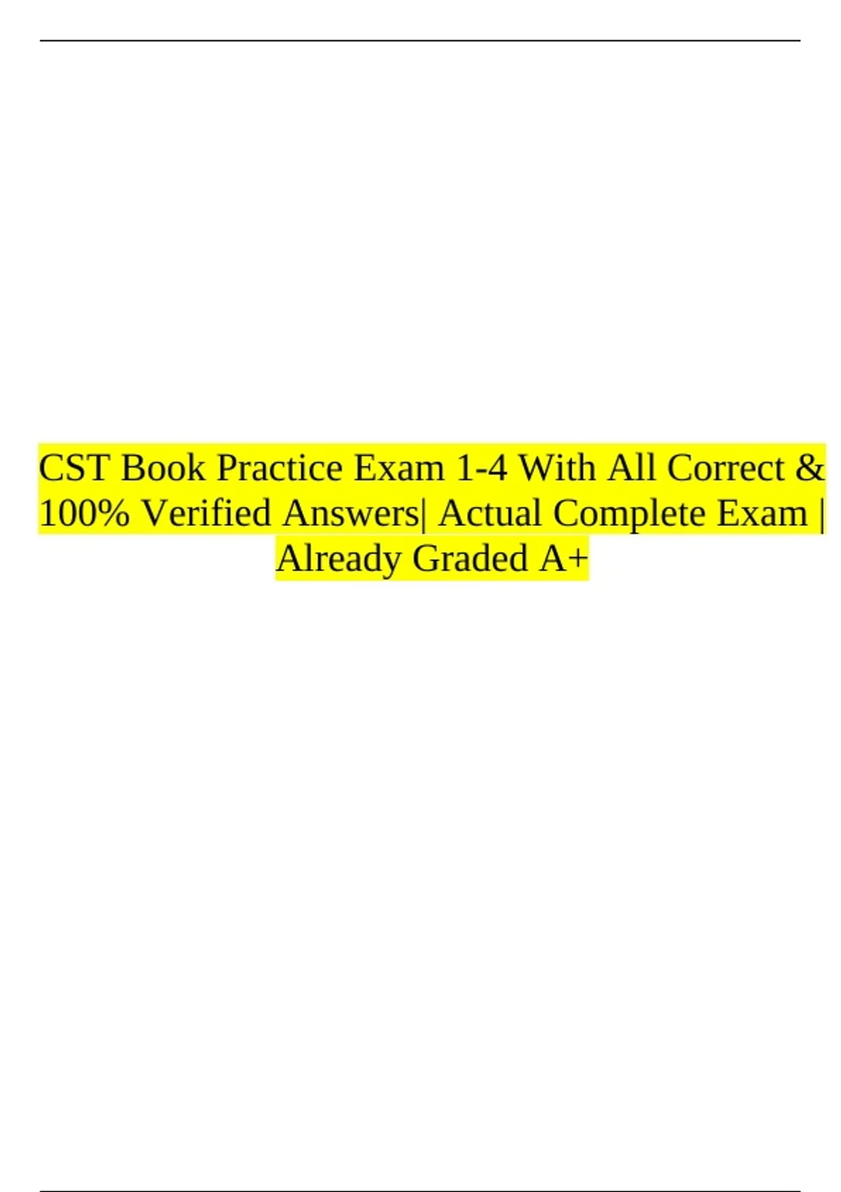 CST Book Practice Exam 1-4 With All Correct & 100% Verified Answers| Actual Complete Exam |Already Graded A+