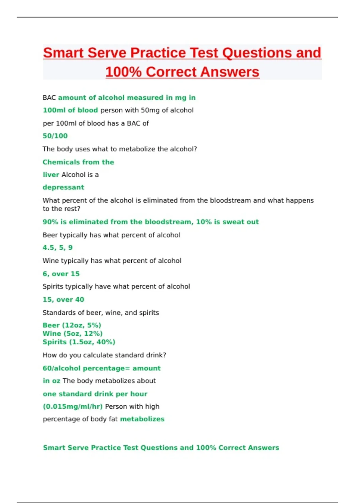 Smart Serve Practice Test Questions and 100 Correct AnswersSmart Serve Practice Test Questions and 100 Correct AnswersSmart Serve Practice Test Questions and 100 Correct AnswersSmart Serve Practice Test Questions and 100 Correct AnswersSmart Serve Practice Test Questions and 100 Correct AnswersSmart Serve Practice Test Questions and 100 Correct Answers