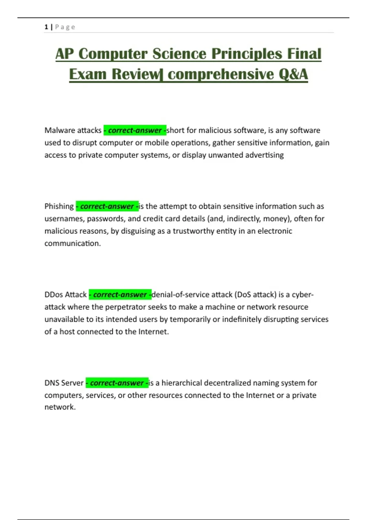 AP Computer Science Principles Final Exam Review| comprehensive Q&A