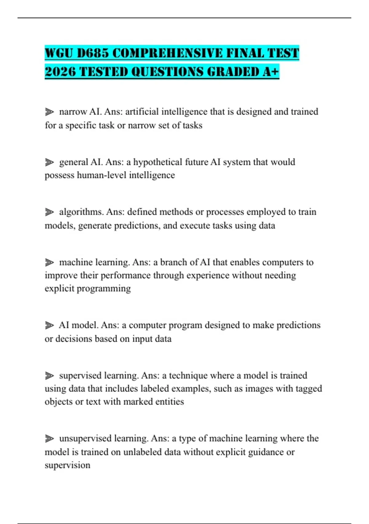 ⫸ Supervised learning. Ans: a machine learning technique where a