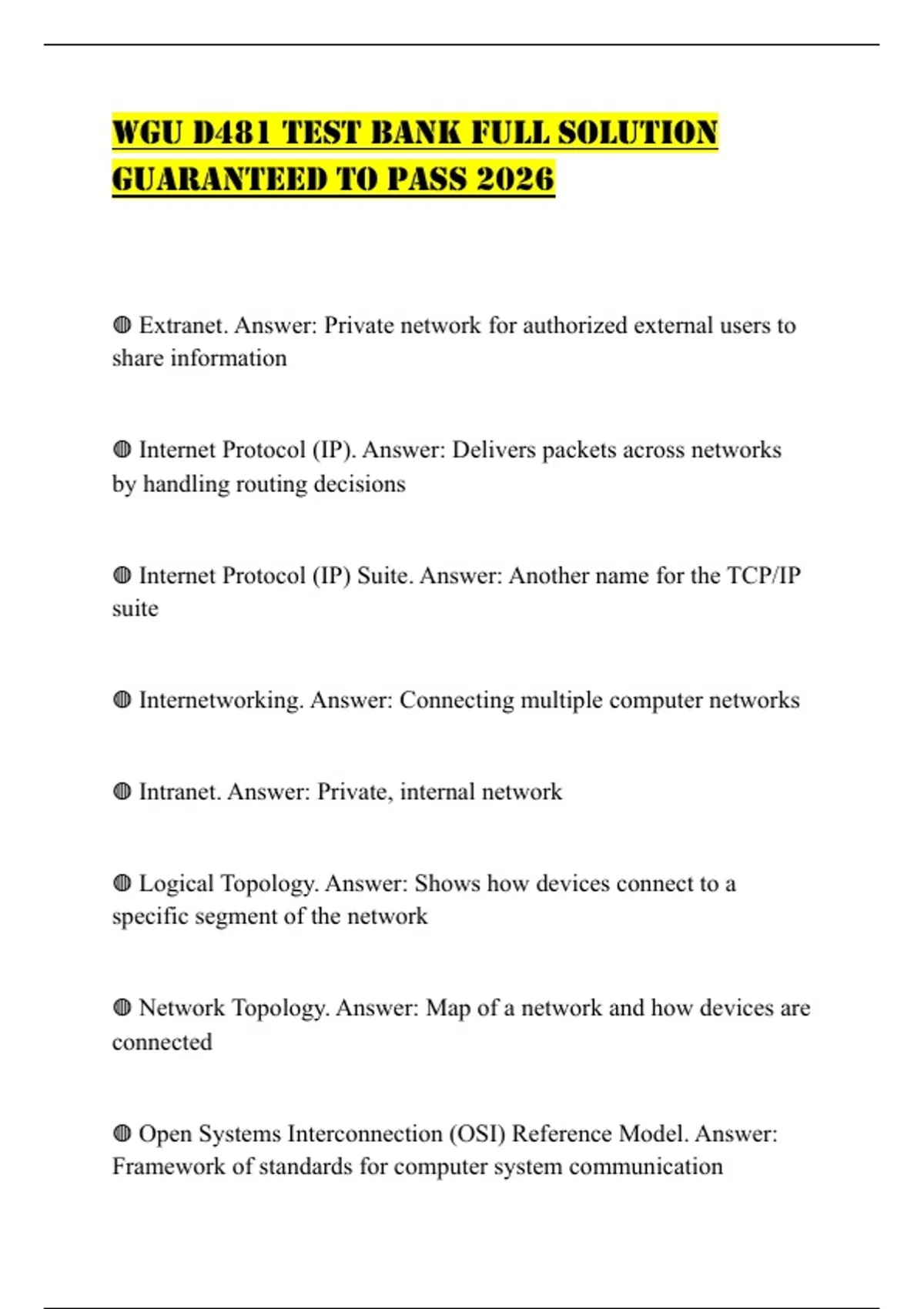 WGU D481 TEST BANK FULL SOLUTION GUARANTEED TO PASS 2026