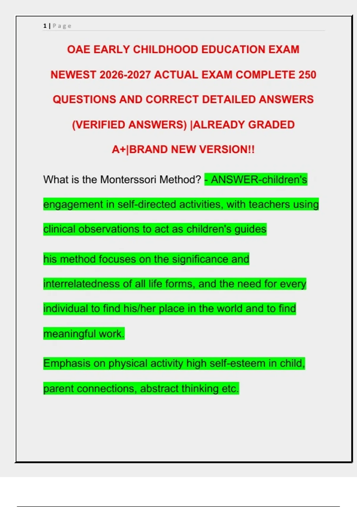OAE EARLY CHILDHOOD EDUCATION EXAM