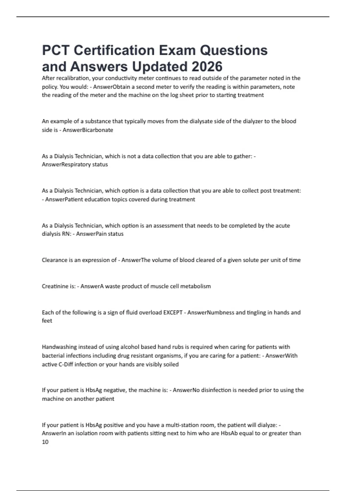 PCT Certification Exam Questions