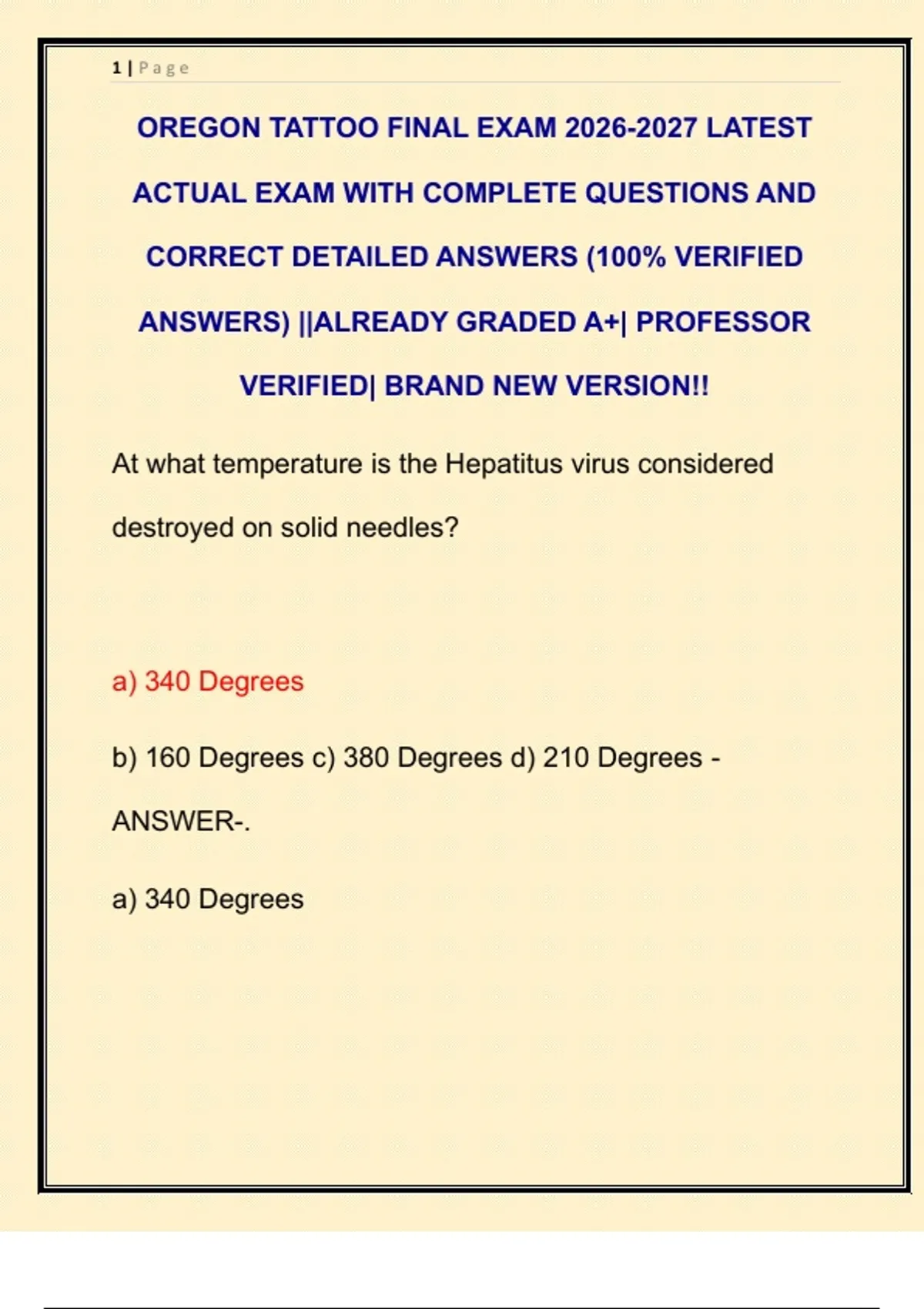 OREGON TATTOO FINAL EXAM 2026-2027 LATEST