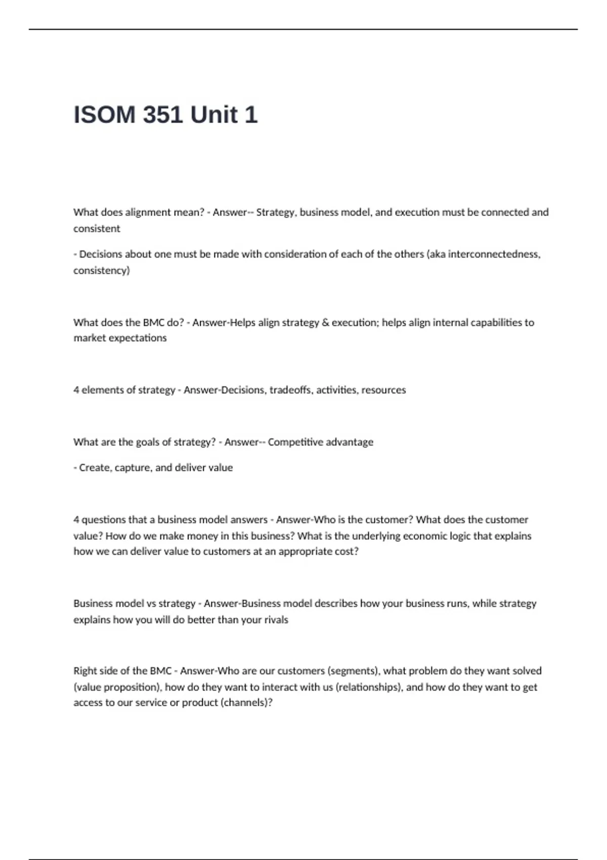 What does alignment mean? - Answer-- Strategy, business model, and execution must be connected and
