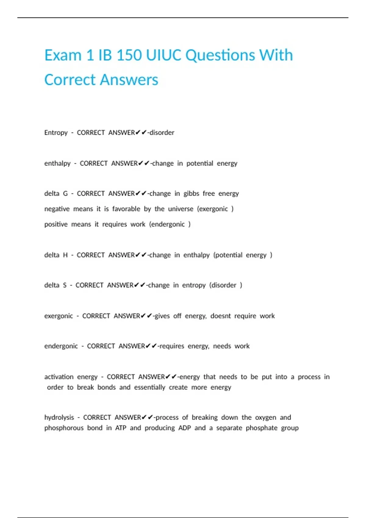 Exam 1 IB 150 UIUC Questions With Correct Answers