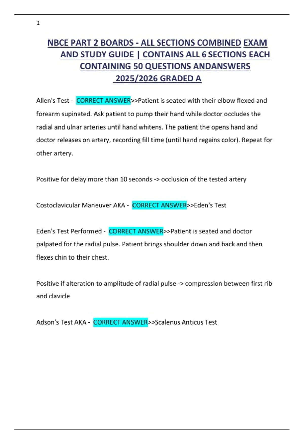 NBCE PART 2 BOARDS - ALL SECTIONS COMBINED EXAM AND STUDY GUIDE | CONTAINS ALL 6 SECTIONS EACH CONTAINING 50 QUESTIONS ANDANSWERS 2025/2026 GRADED A