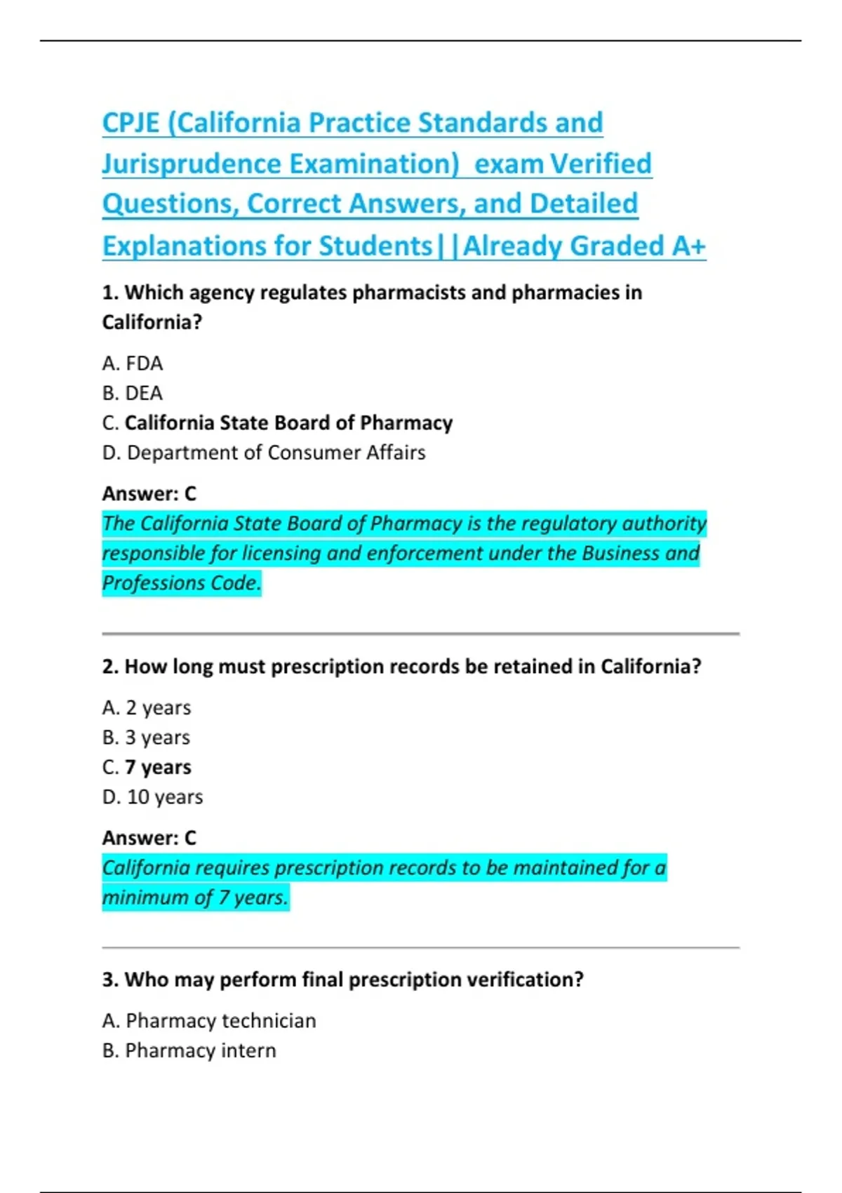CPJE (California Practice Standards and Jurisprudence Examination) exam Verified Questions, Correct Answers, and Detailed Explanations for Students||Already Graded A+