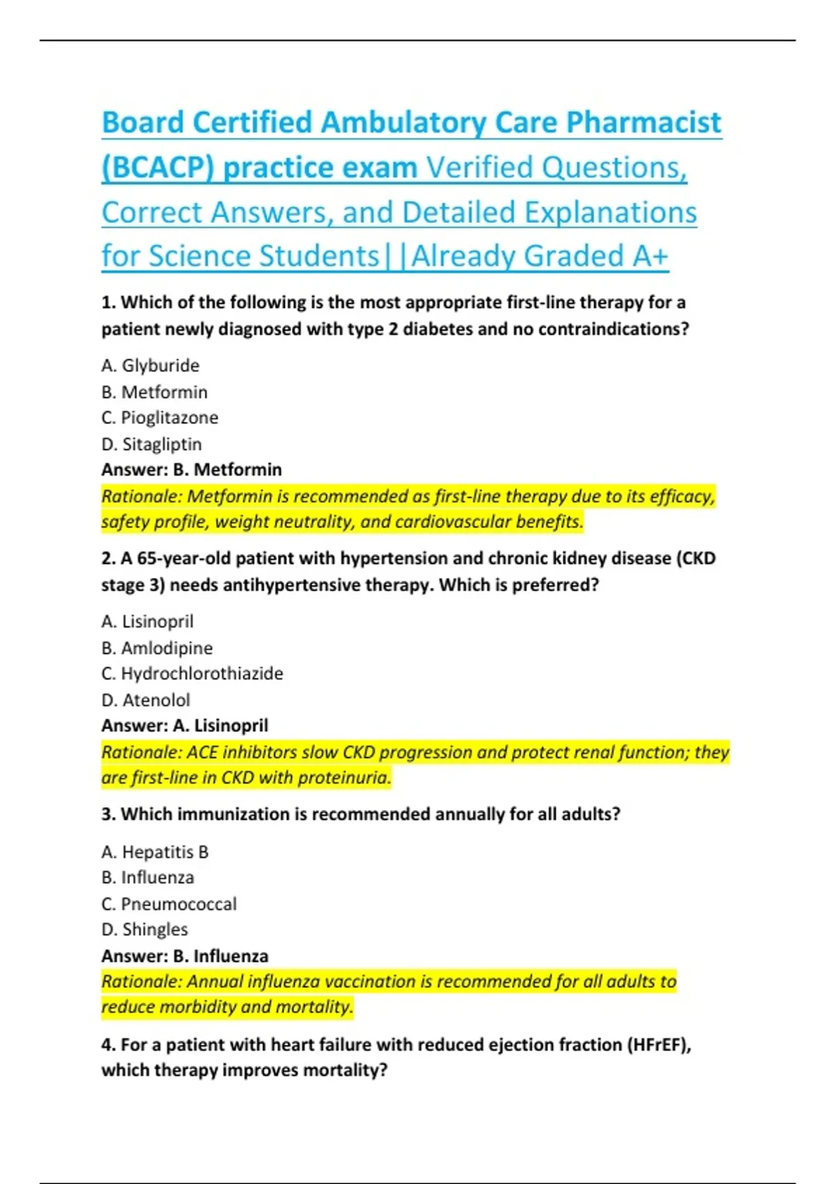 (BCACP) practice exam Verified Questions,
