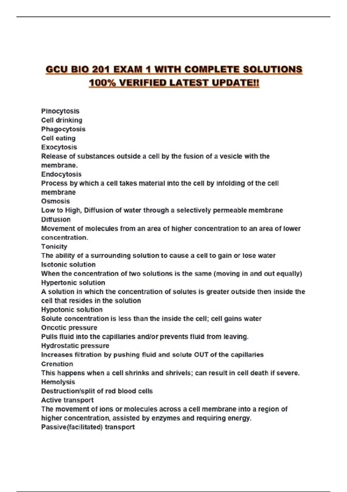 GCU BIO 201 EXAM 1 WITH COMPLETE SOLUTIONS 100% VERIFIED LATEST UPDATE!!...