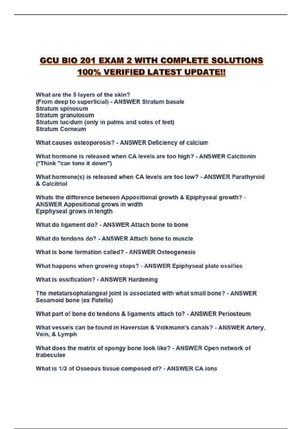 GCU BIO 201 EXAM 2 WITH COMPLETE SOLUTIONS 100% VERIFIED LATEST UPDATE!!...