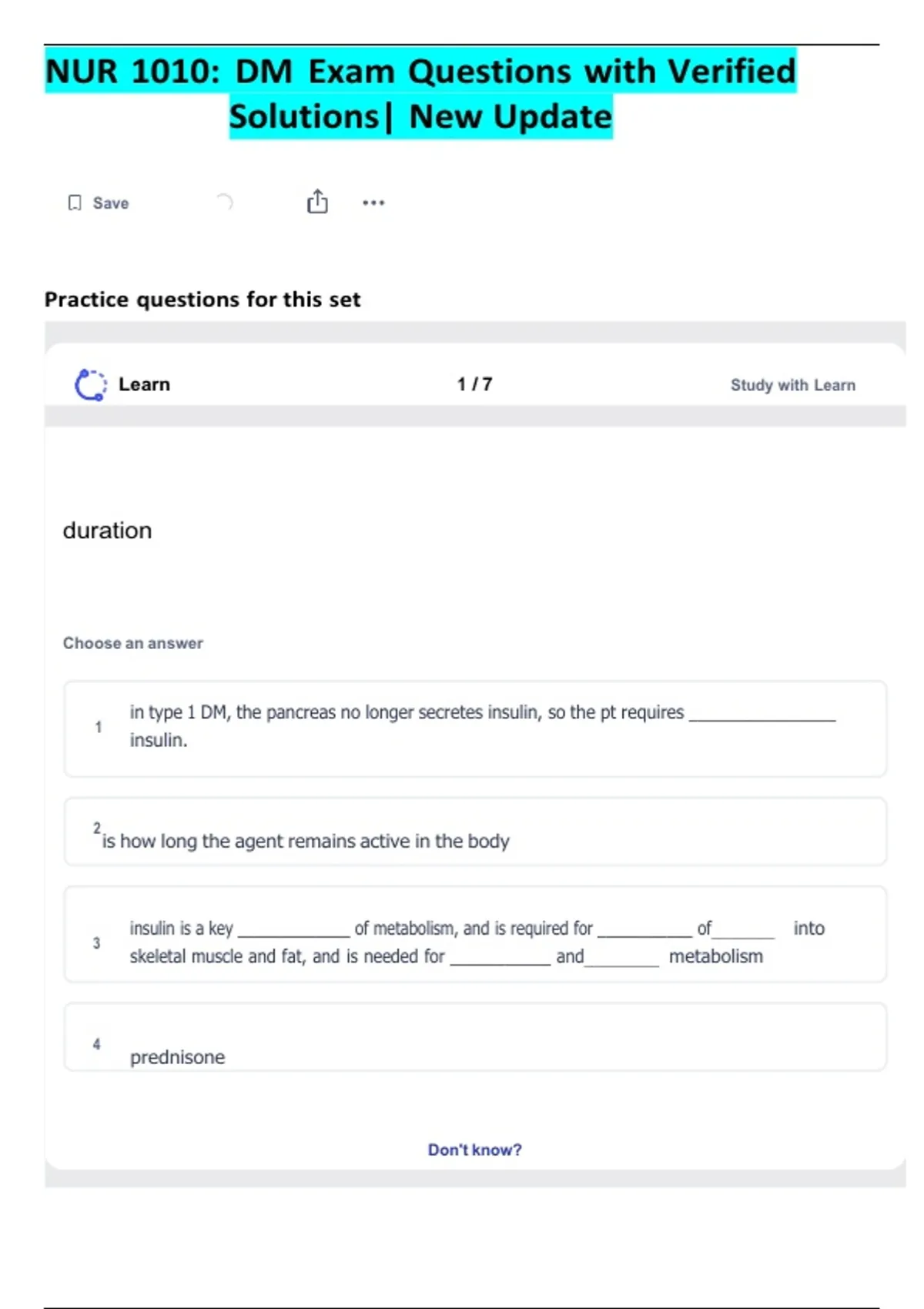NUR 1010: DM Exam Questions with Verified Solutions| New Update