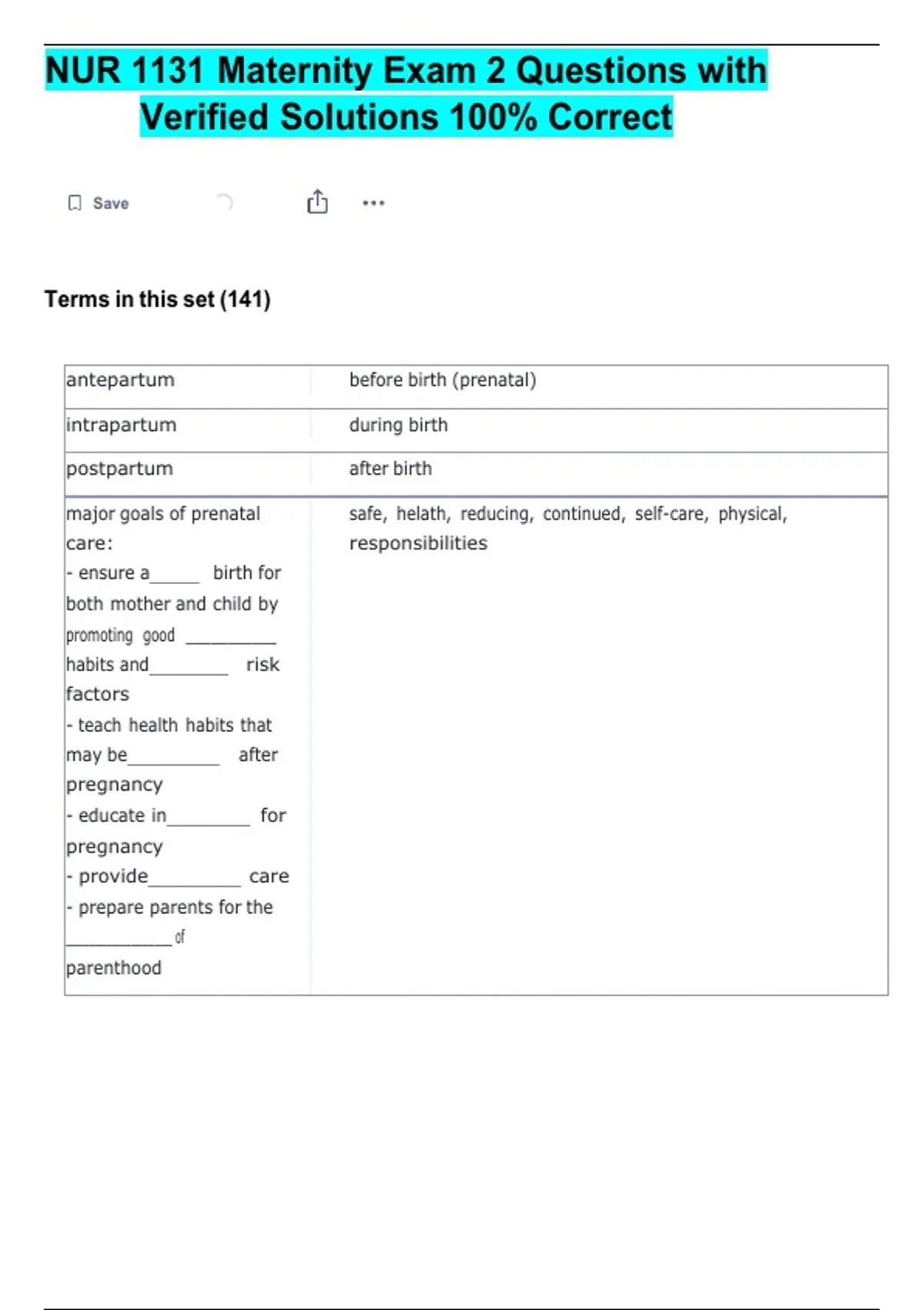 NUR 1131 Maternity Exam 2 Questions with Verified Solutions 100% Correct