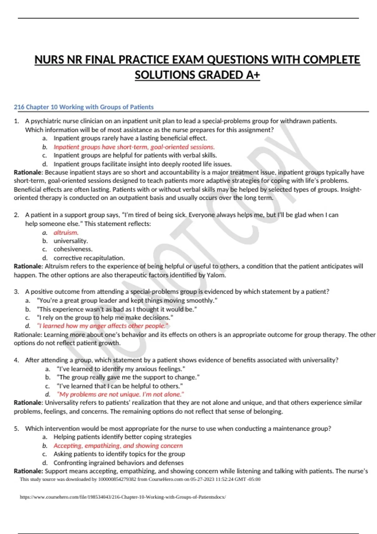 NURS NR FINAL PRACTICE EXAM QUESTIONS WITH COMPLETE