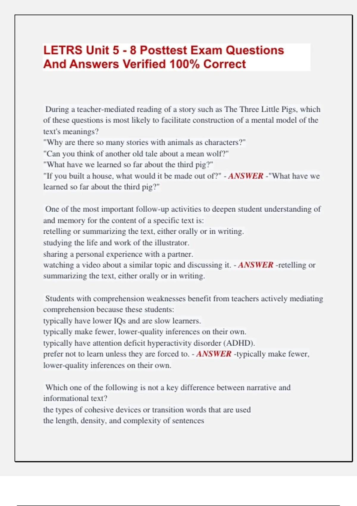 LETRS Unit 5 - 8 Posttest Exam Questions