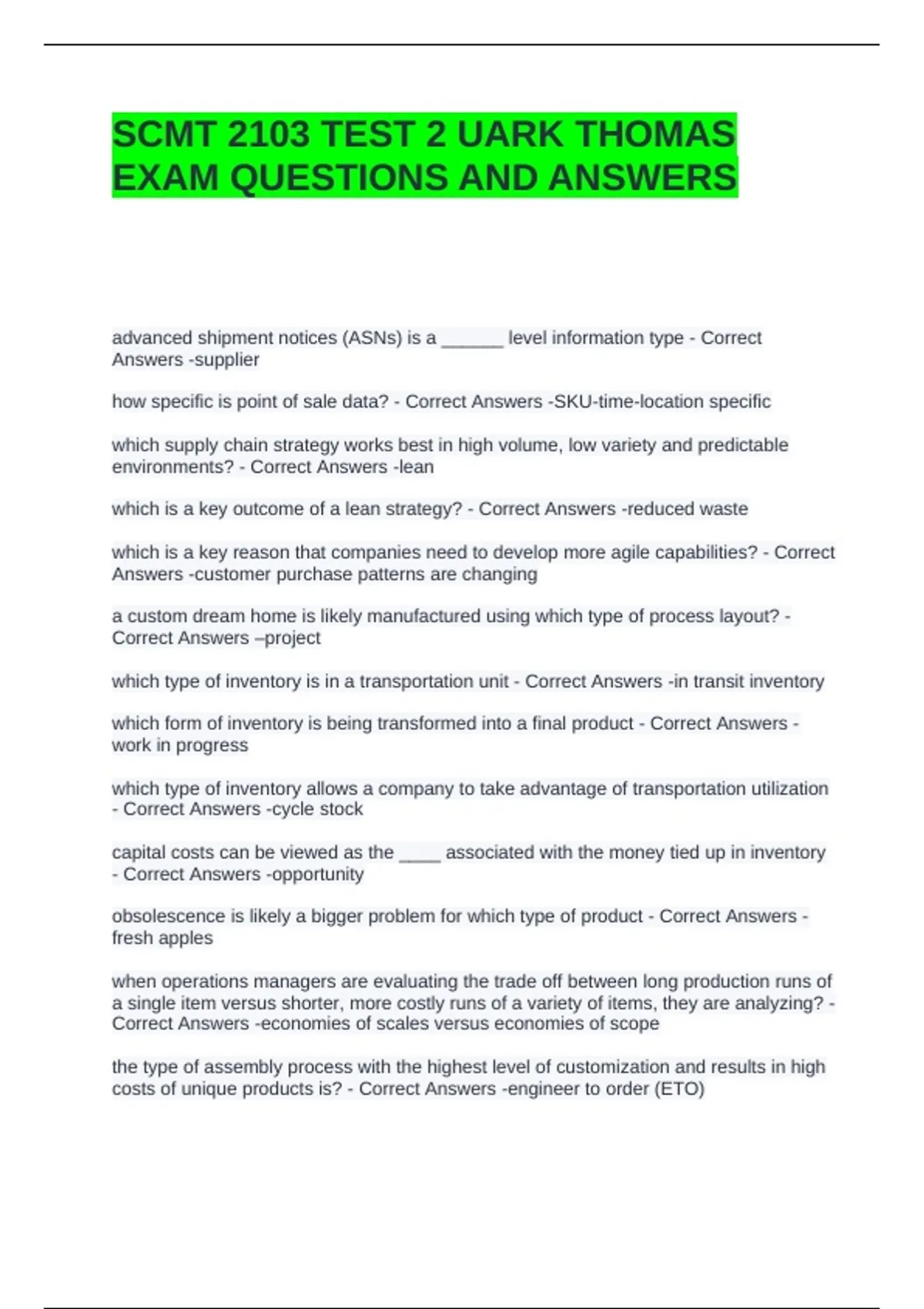 SCMT 2103 TEST 2 UARK THOMAS
