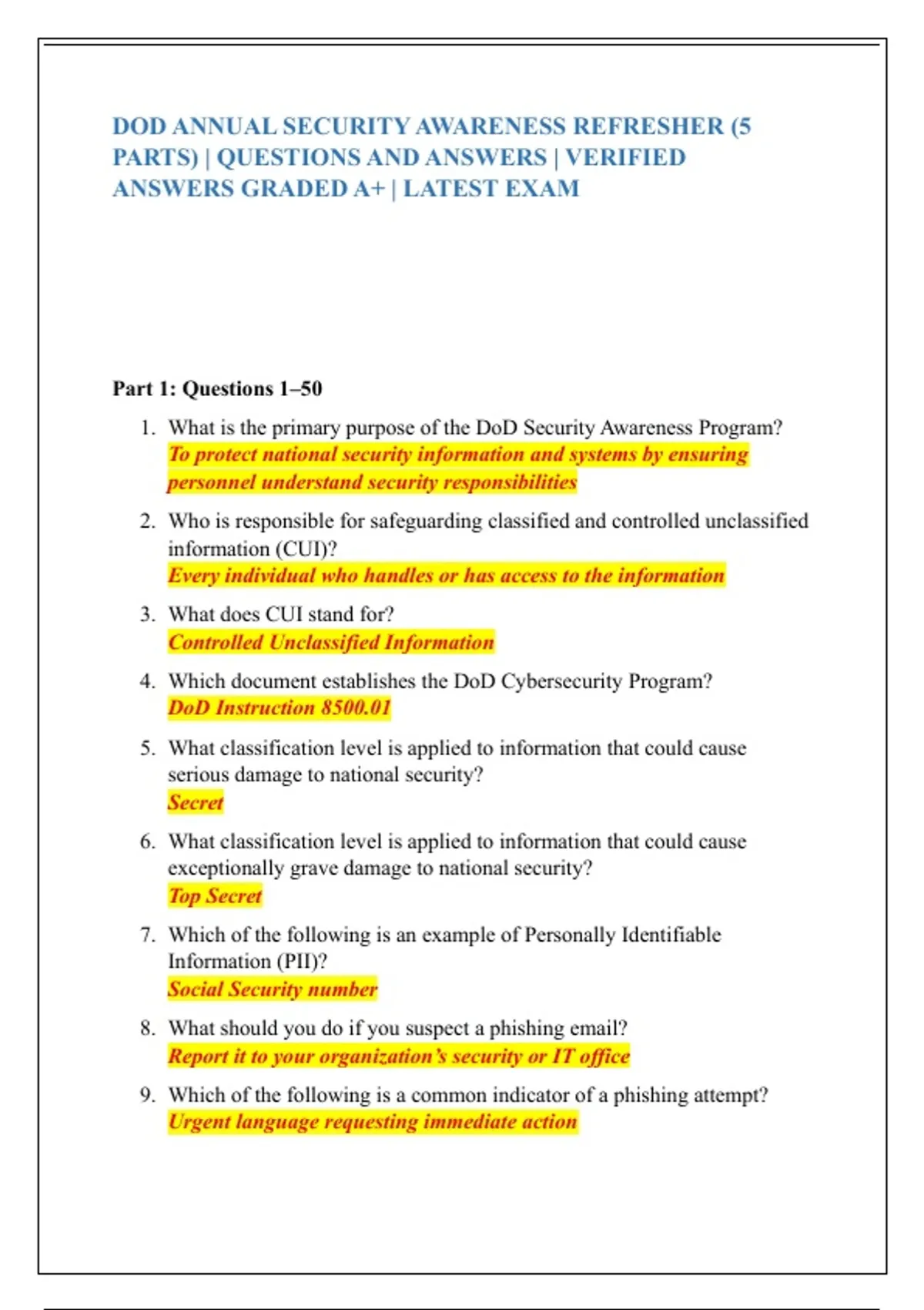 DOD ANNUAL SECURITY AWARENESS REFRESHER (5