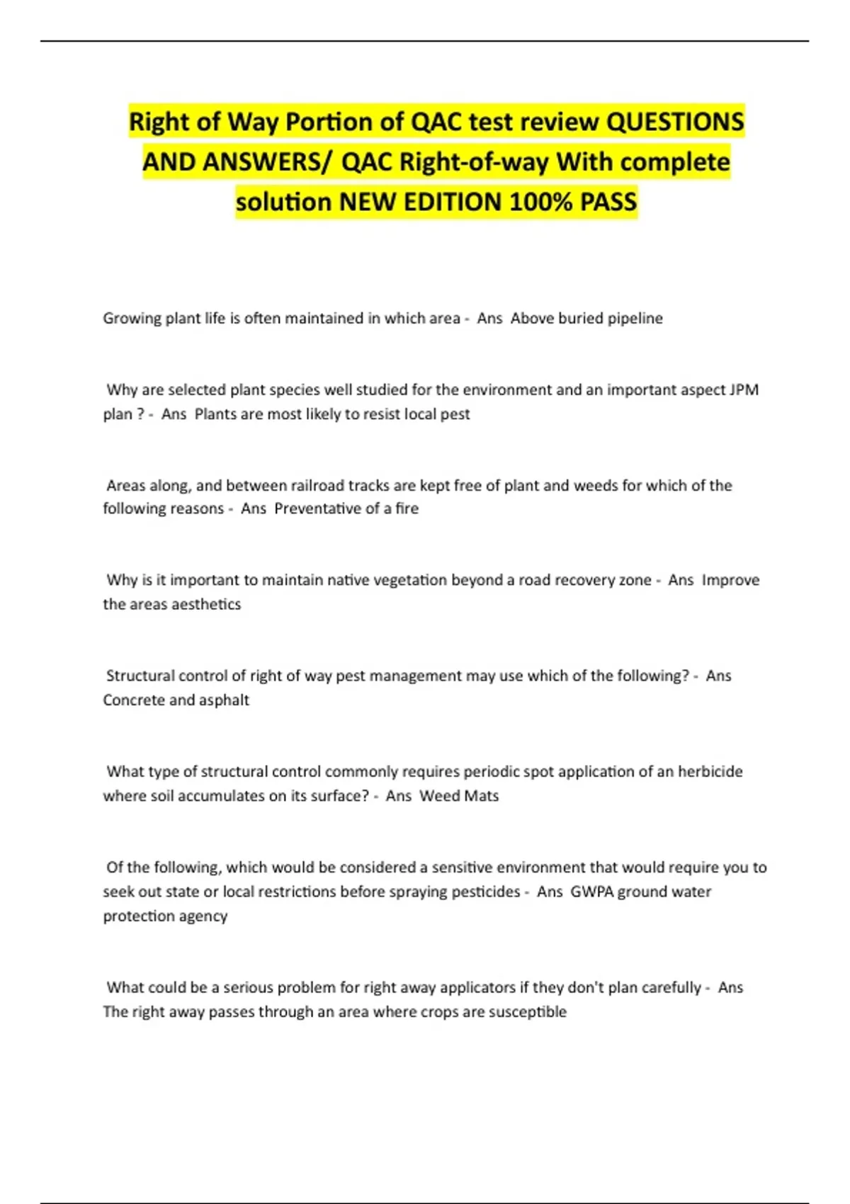 AND ANSWERS/ QAC Right-of-way With complete
