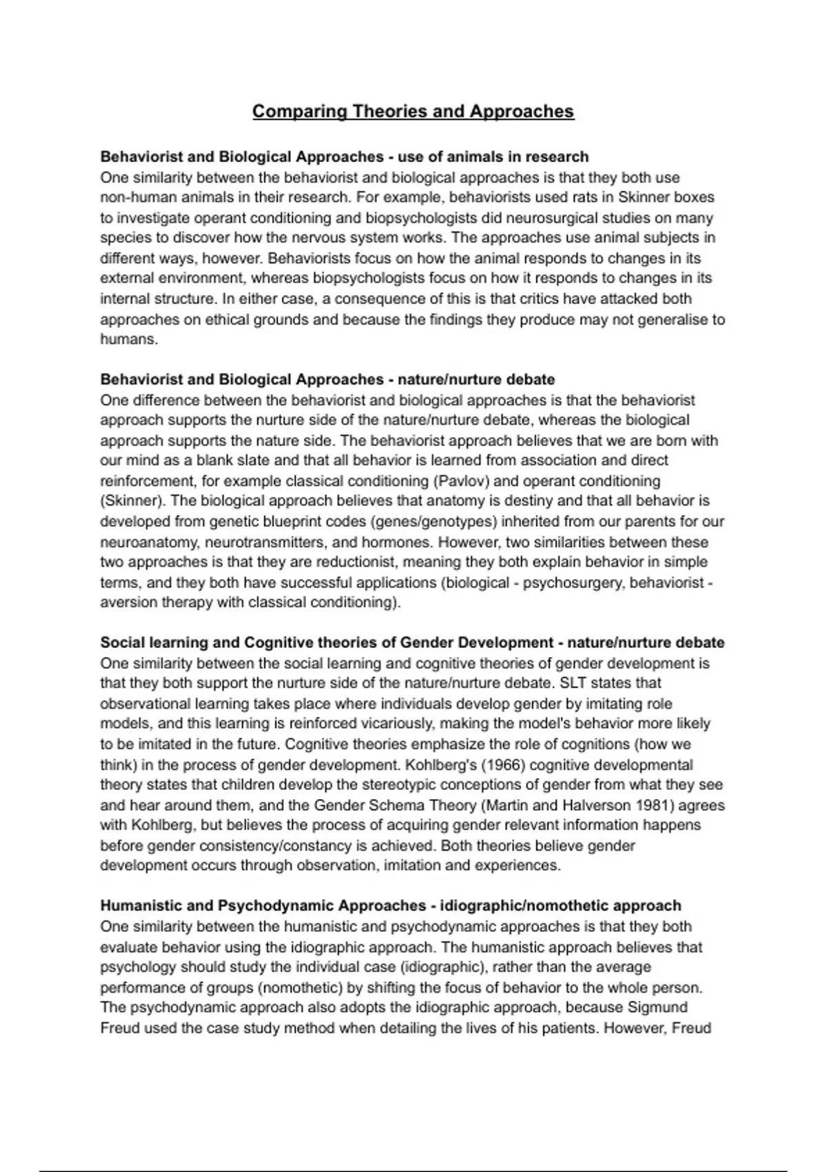 Social learning and Cognitive theories of Gender Development - nature/nurture debate