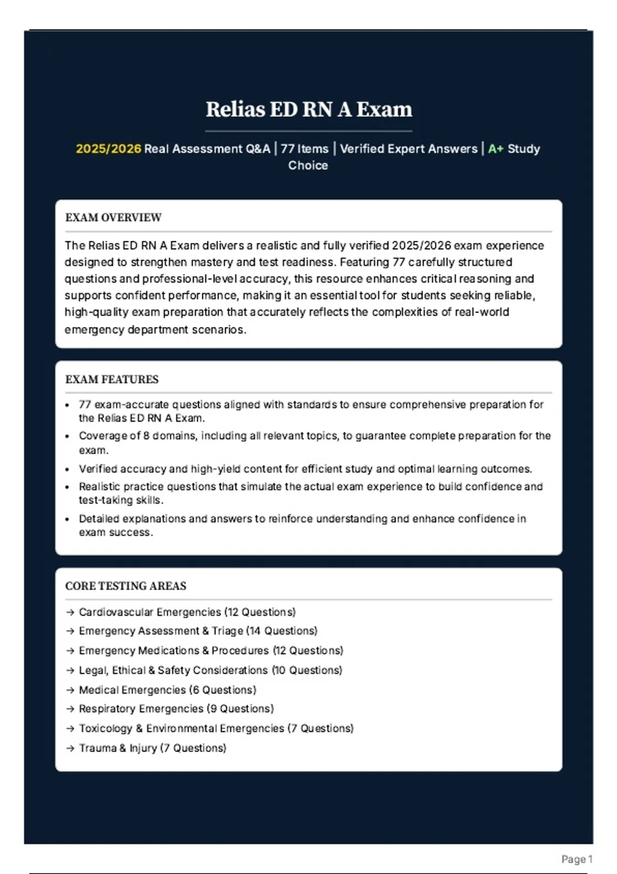The Relias ED RN A Exam delivers a realistic and fully verified 2025/2026 exam experience