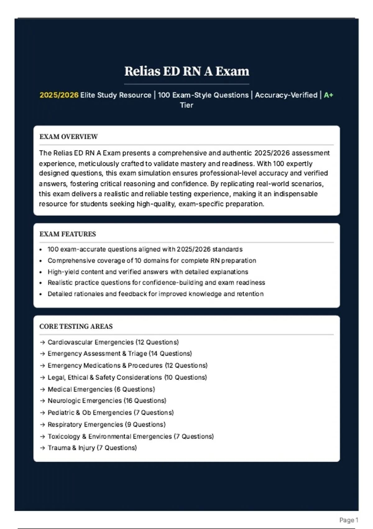 The Relias ED RN A Exam presents a comprehensive and authentic 2025/2026 assessment