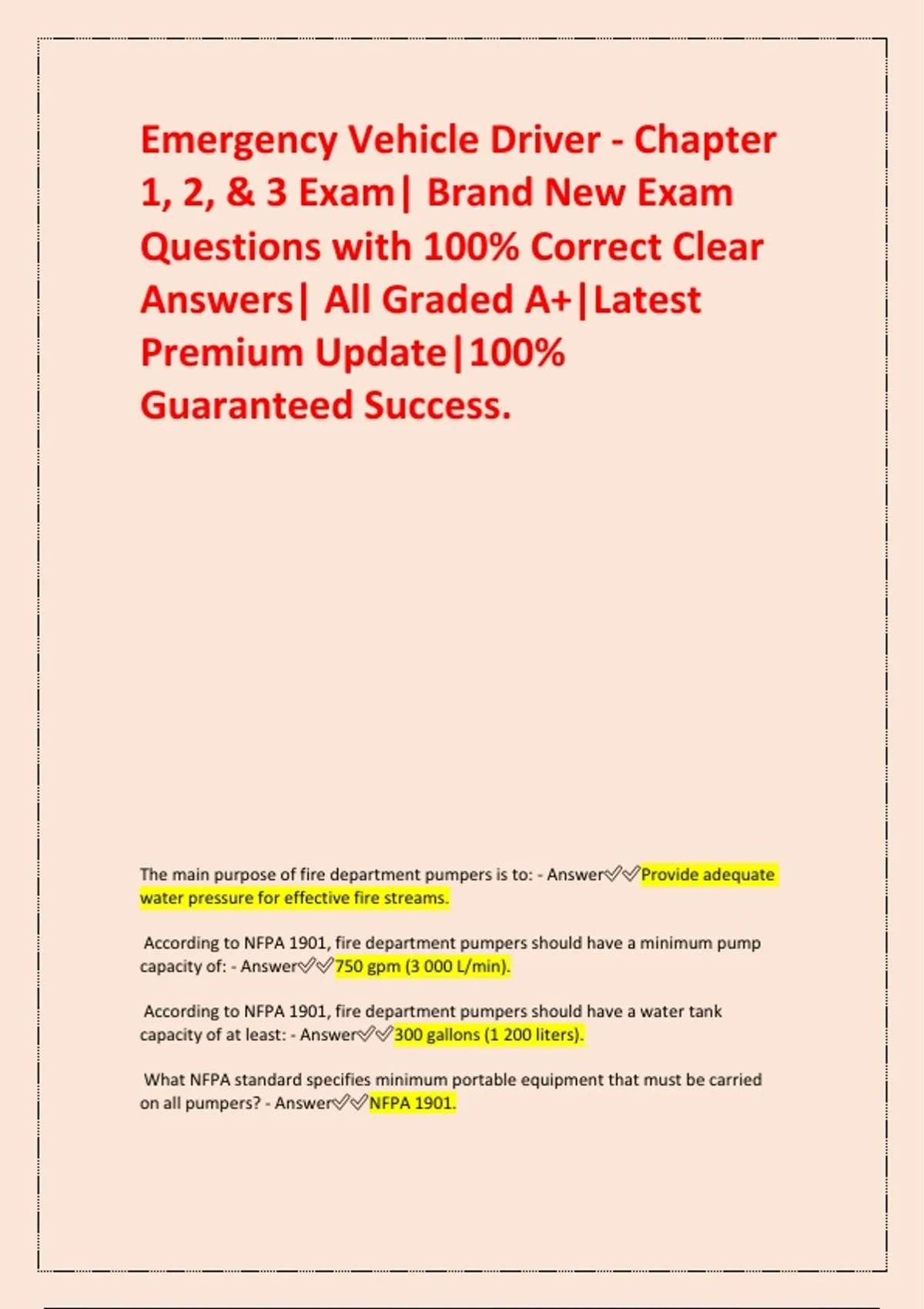 The main purpose of fire department pumpers is to: - Answer✅✅Provide adequate