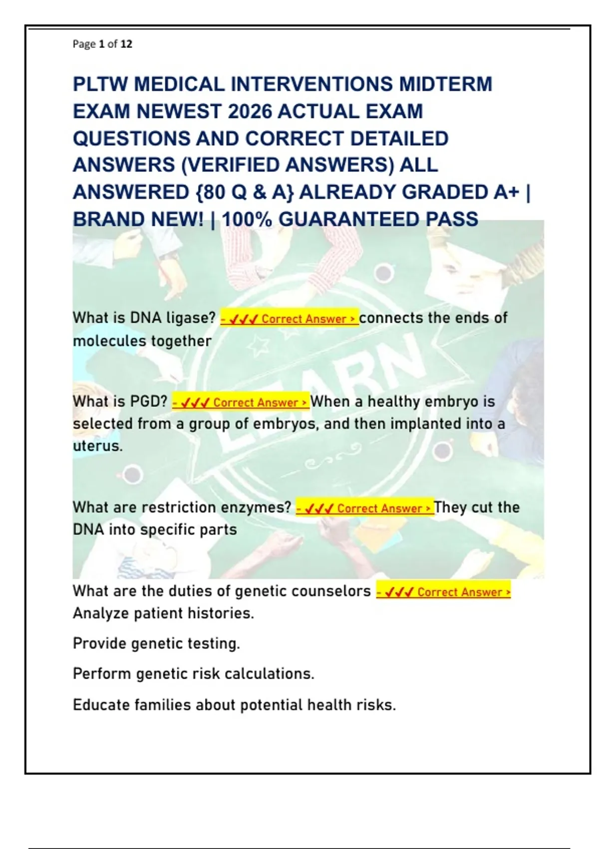 PLTW MEDICAL INTERVENTIONS MIDTERM