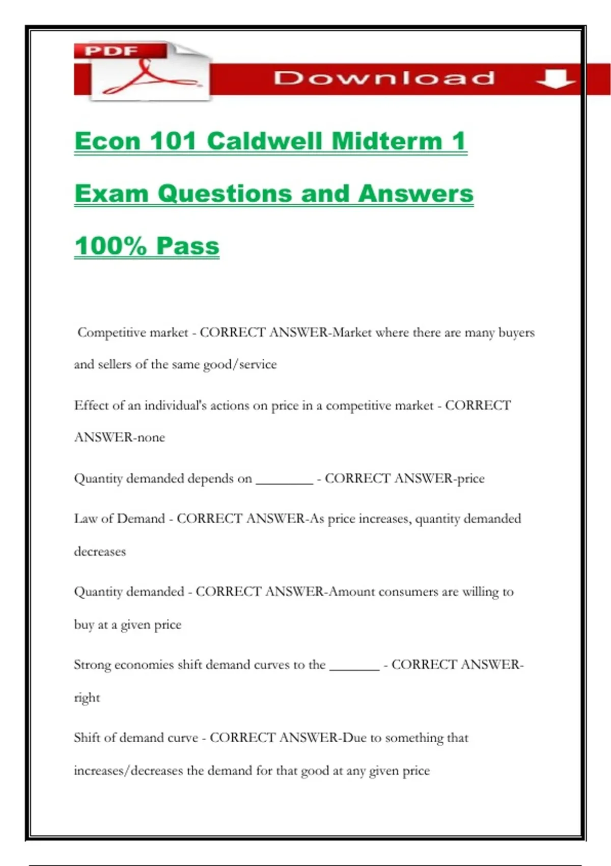 Econ 101 Caldwell Midterm 1 Exam Questions and Answers 100% Pass