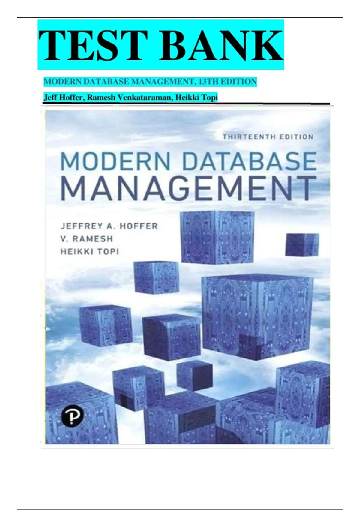 Modern Database Management 13th Edition Test Bank by Jeff Hoffer, Ramesh Venkataraman & Heikki Topi – Latest Update 2026 | Exam Prep & Practice Questions