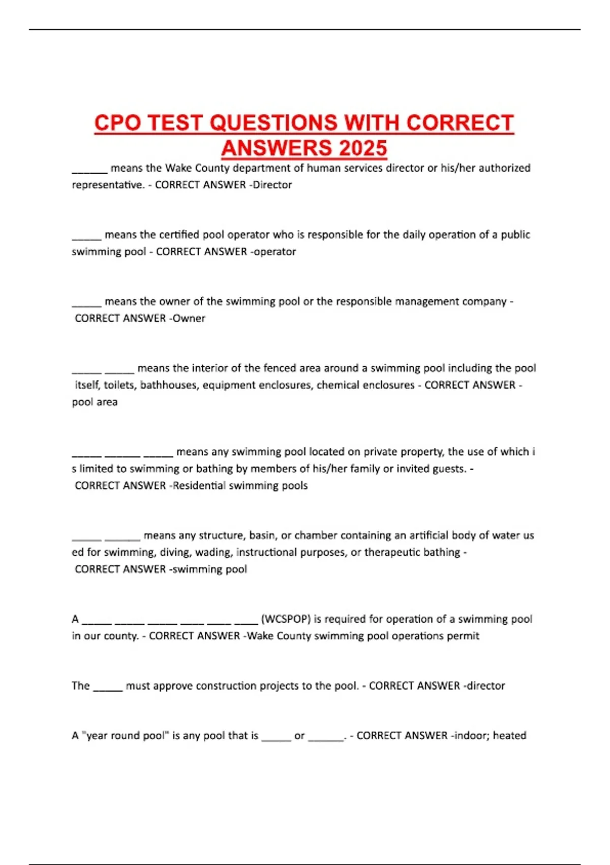 CPO TEST QUESTIONS WITH CORRECT ANSWERS