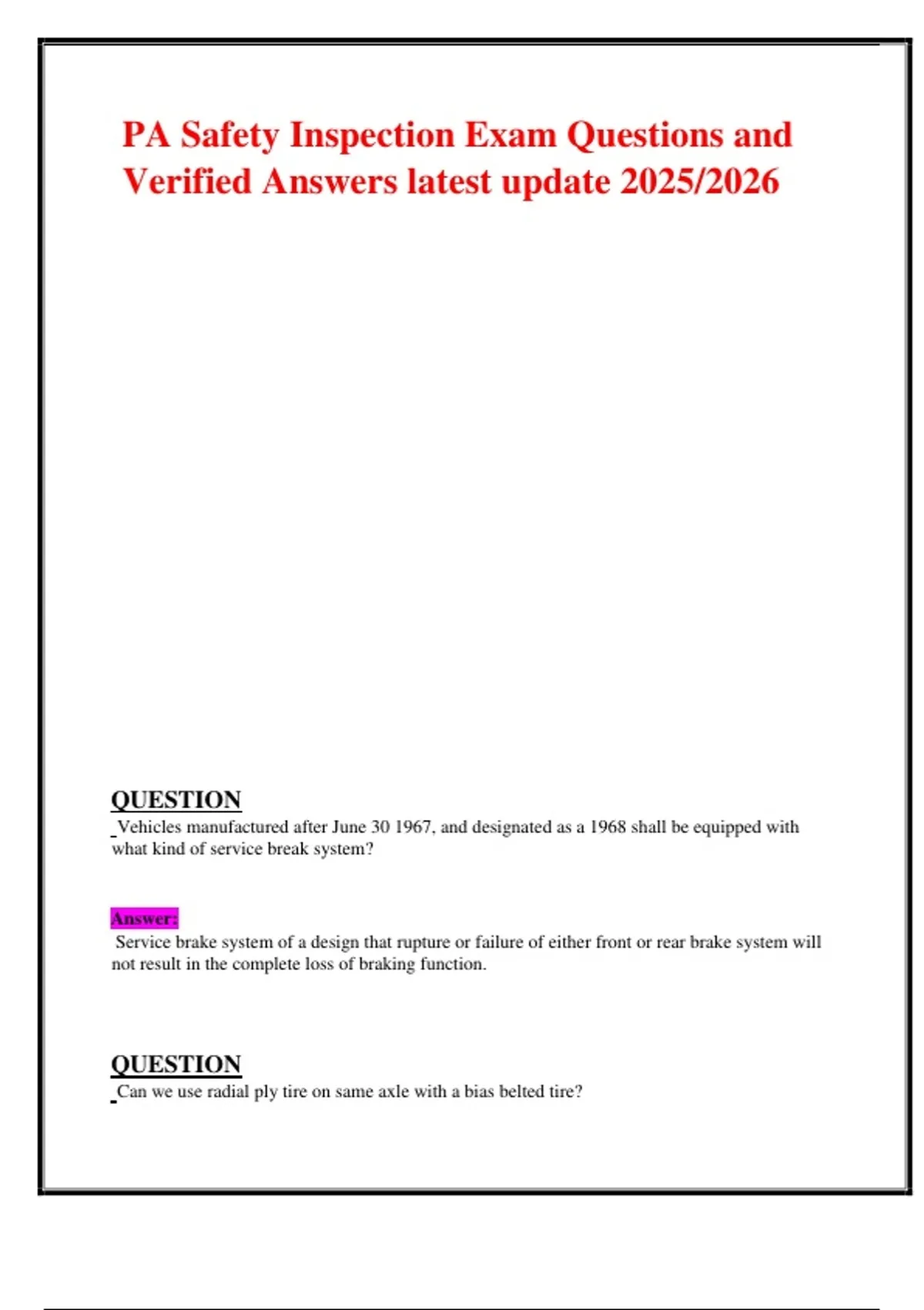 PA Safety Inspection Exam Questions and Verified Answers latest update 2025/2026