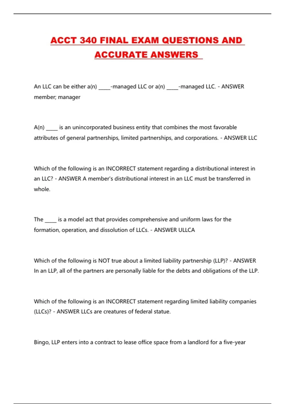 ACCT 340 FINAL EXAM QUESTIONS AND ACCURATE ANSWERS ...