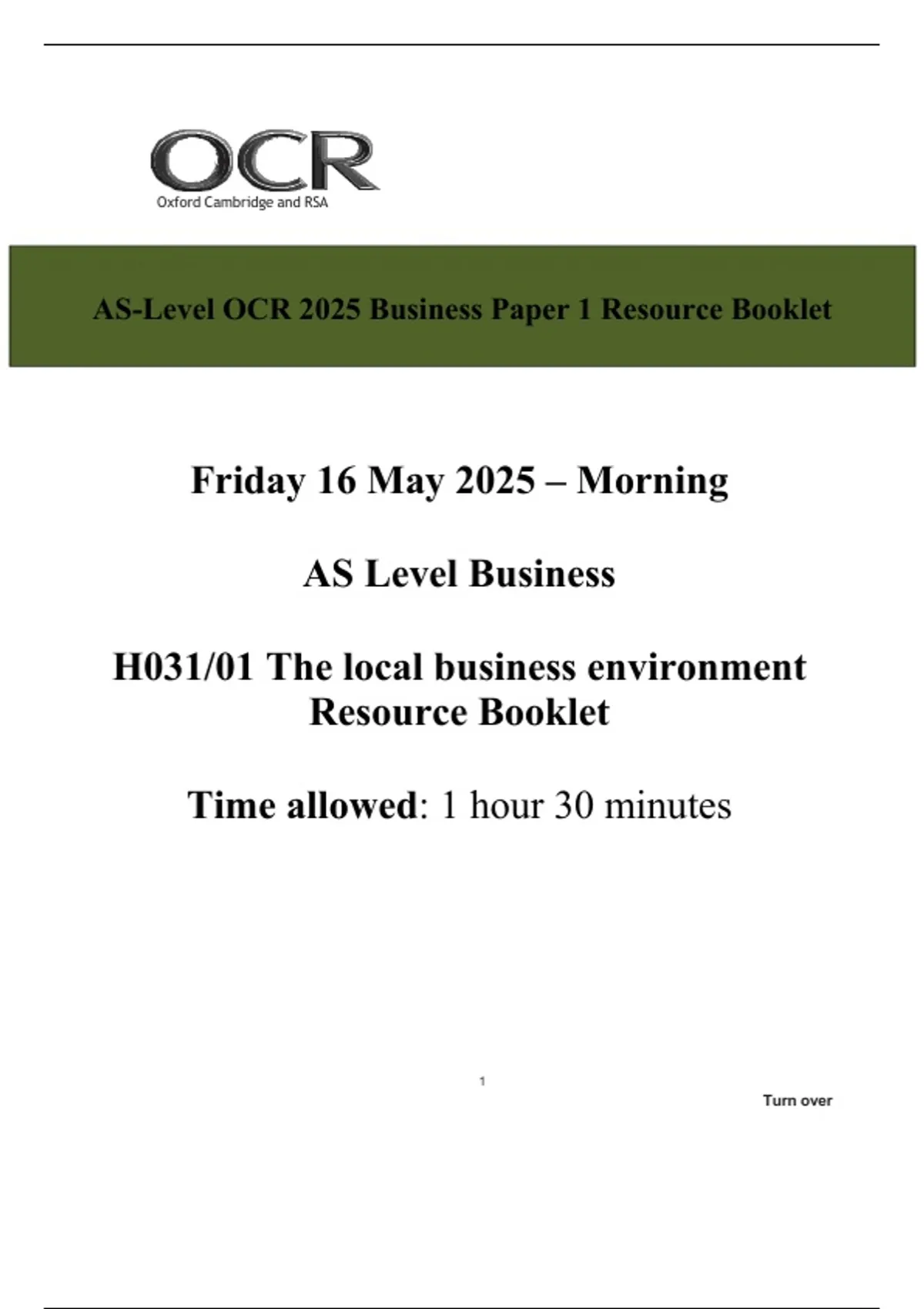 AS-Level OCR 2025 Business Paper 1 Resource Booklet