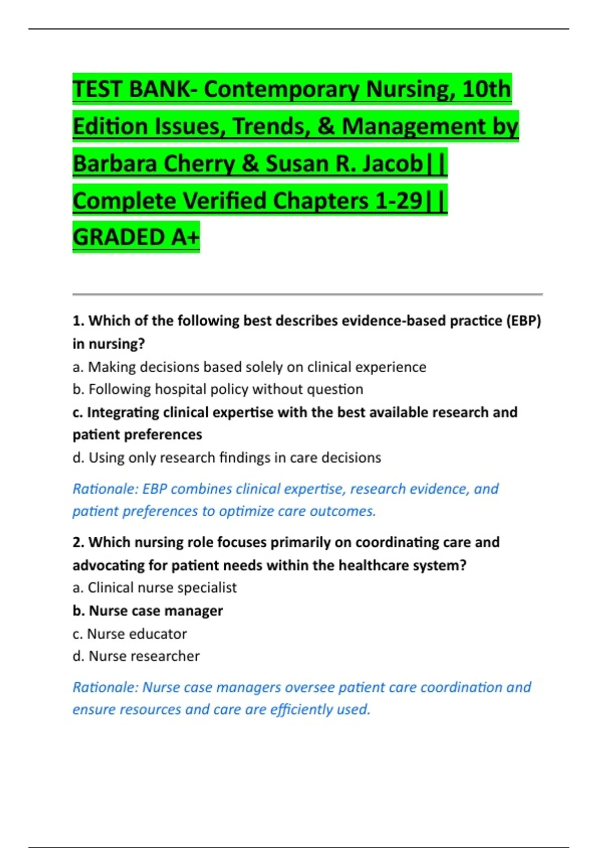 Rationale: Magnet hospitals are recognized for outstanding nursing