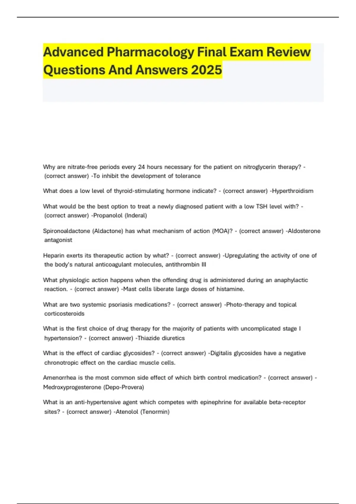 Advanced Pharmacology Final Exam Review