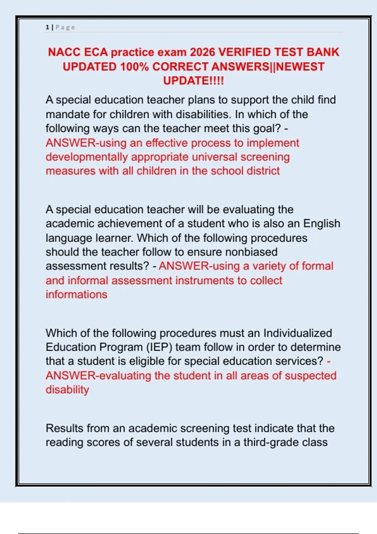 VERIFIED TEST BANK UPDATED 100% CORRECT