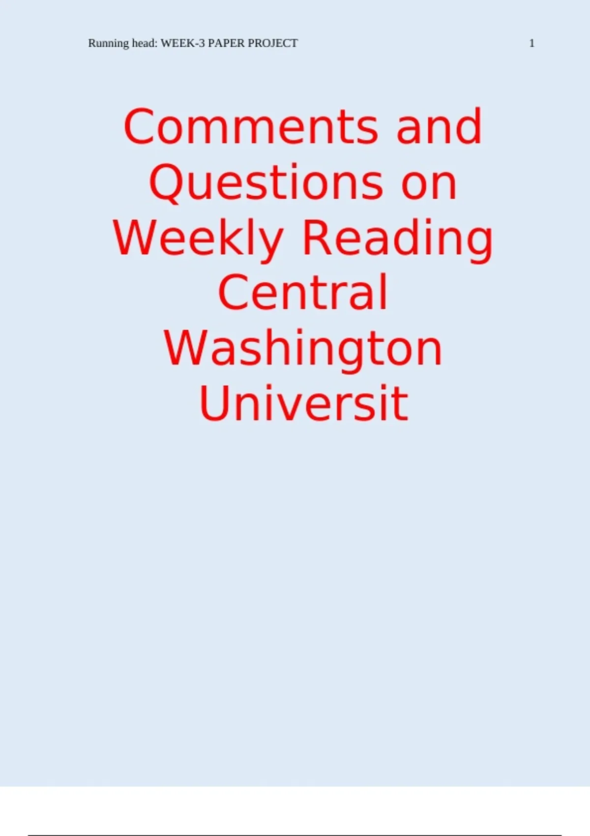 This package provides a comprehensive and course-aligned response to all major academic components of the Social Problems course at Central Washington University. It is designed to demonstrate full engagement with the theoretical, empirical, and analytical requirements of the course through structured written work, critical reflection, and applied sociological analysis. The package addresses the foundational definition of social problems as socially constructed conditions that affect significant segments of society and require collective solutions. It systematically applies sociological reasoning to connect individual experiences with broader social structures, institutions, and power relations, reflecting the core learning objectives of the course. Included materials respond directly to assigned readings by summarising key arguments, identifying central sociological concepts, and critically engaging with scholarly and media-based sources. The package demonstrates the ability to analyse social problems using sociological perspectives, emphasising structural and inequality-based explanations over individualised interpretations. The package covers central thematic areas of the course, including social inequality, gender inequality, media and social problems, and the role of culture and power in shaping public understanding of social issues. Each topic is examined in terms of its causes, consequences, and societal responses, consistent with the analytical framework taught in the course. In addition, the package fulfils formal writing and assessment requirements through weekly response papers, structured project work, and reflective assignments. These materials demonstrate academic writing competence, critical thinking, and adherence to course expectations, including engagement with feedback and revision. Overall, this package constitutes a complete and coherent body of work that answers the conceptual, analytical, and assessment demands of the Social Problems course at Central Washington University. It demonstrates mastery of course content, sociological analysis, and applied critical thinking across all required coursework.