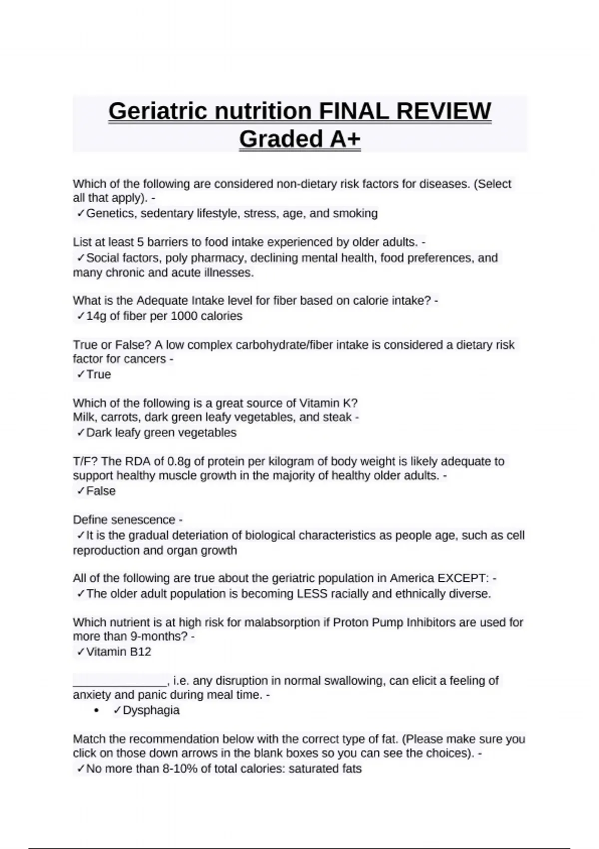 Geriatric nutrition FINAL REVIEW Graded A+
