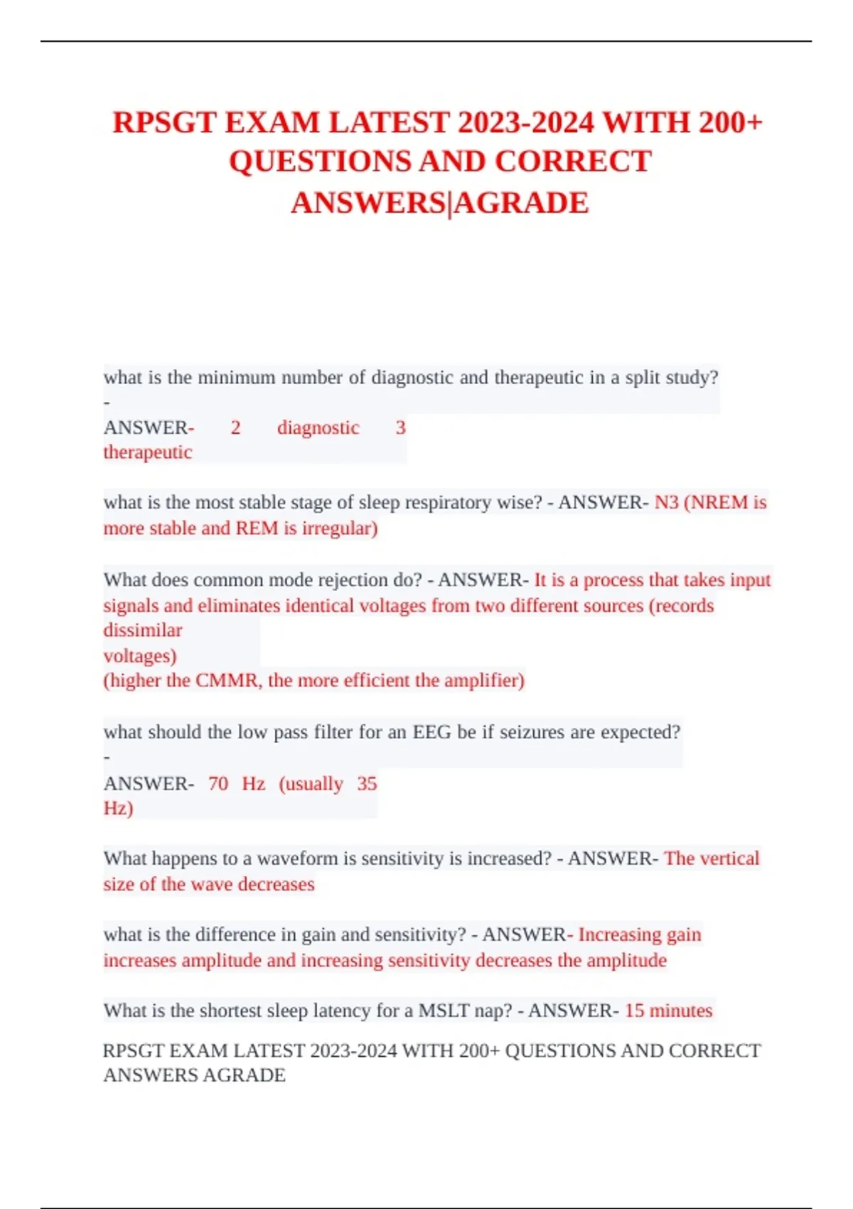 RPSGT EXAM LATEST 2023-2024 WITH 200+ QUESTIONS AND CORRECT