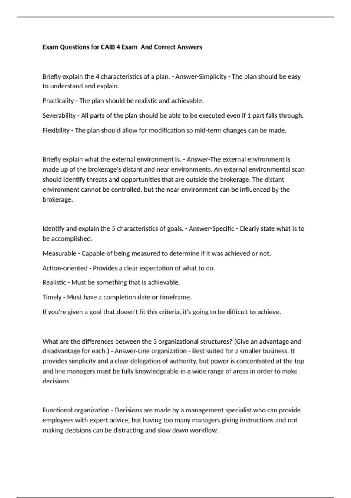 Briefly explain the 4 characteristics of a plan. - Answer-Simplicity - The plan should be easy